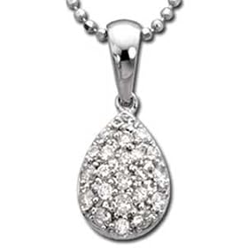 0.25 Ct.T.W. Round Brilliant Cut Diamonds, 14Kt. Gold, Pear Shape Cluster Diamond Pendant Necklace. This gorgeous pear shaped necklace is fashioned in gleaming 14Kt. White or Yellow gold and accented with sparkling Round Brilliant cut diamonds in a pave setting. This beautiful piece can be paired with the matching earrings, ring or both. Gold White 14Kt. Approx Wgt 2.37 gms. Length 9.52 mm Chain 16 Inches Gold Chain Finish Satin Diamonds Round Brilliant Cut Color Avg. H Clarity Avg. SI Approx Carat 0.25 Ct.T.W. # Of Pcs. 22 Setting Pave Availability In Stock Shipping Usually in 24 to 72 hours Notes Select Yellow Gold to order in Yellow Gold. Free Standard Shipping!. 100% Satisfaction Guaranteed!. 30-Day Return Policy.