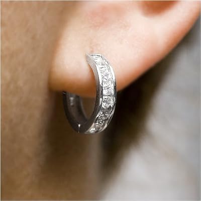 The look of white gold at a silver price! These sterling silver earrings perfectly mimic white gold and diamonds with their rhodium finish and cubic-zirconia stones. Rhodium is a metal that is part of the platinum family. High-end silver and gold are rhodium treated to prevent oxidation and to have the white shiny look associated with platinum and white gold. These earrings' rhodium finish will prevent them from tarnishing.