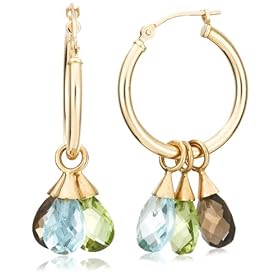 These versatile gold hoops feature removable briolette gemstone dangles, so you can choose the colors that suit your mood or outfit. Radiant brown smoky topaz, light blue topaz, and golden-green peridot are capped in yellow gold and threaded along the simple 10 karat yellow gold hoops. Select and combine for several different looks, or wear the hoops all on their own. They fasten with hinged snap-down posts.