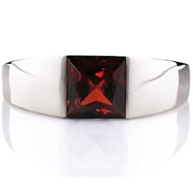 14K White Gold Ring with 7x7mm Garnet Gemstone