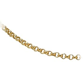 The rolo chain is the caviar among chains: it is erudite and intellectual, more comfortable at a champagne fundraiser than a neighborhood potluck. This chain loves limousines, European films, and expensive wines. Dense links like popped bubbles hook perpendicularly to contrast their liquid gold surface with space--a perfect balance of everything and nothing. The chain is 1.5mm thick, 20 inches long, and made of 14k Italian gold with a lobster claw clasp.