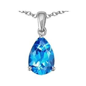 1.70 cts Genuine Pear Shape Blue Topaz Pendant - 14kt White or Yellow Gold[December Birthstone (Topaz)]