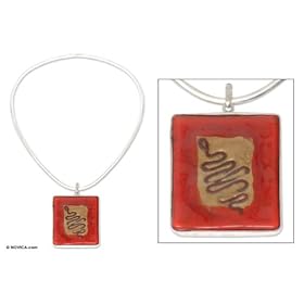 NOVICA, in association with National Geographic, offers thousands of limited edition and one-of-a-kind gifts, jewelry, and home decor treasures handmade by master artists and artisans throughout the world. Undulating with the force of artistry, a copper motif travels through glass chambers set in gleaming silver. The illusion is magnificent as Sergio Suzana works with bright warm colors using fused glass techniques. .950 rating silver Artisan Info: "I've been crafting a variety of art pieces since 1968 using materials such as resin, metal, gems and leather. I decided to study medicine and I managed to finance my studies through my art. I became a neurosurgeon and worked in a variety of public hospitals. I took a break after a while, because I became disillusioned with the health service and the lack of resources. "What started as a year off turned into two, then three and so on. I never returned to medicine. "Instead, I continued to create and develop in the field of arts, achieving positive results. "Round about 2000, I crafted my first fused glass fruit bowl and I became enchanted with it. I resolved to learn more about this craft and I bought a kiln and the necessary tools. I was completely dedicated to the learning of this craft, all on my own. The most fascinating moment in the crafting of glass pieces is when you open the kiln's door. There's nothing like predicting the patterns and hues the paint will take - the end result is magnificent! "Painting is a meticulous process..
