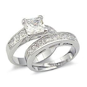 Princess Cut Cubic Zirconia Engagement Ring and Wedding Band