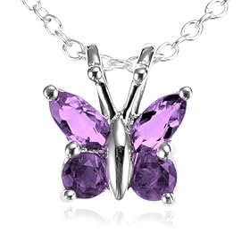 Sterling Silver Amethyst Butterfly Pendant, 18"