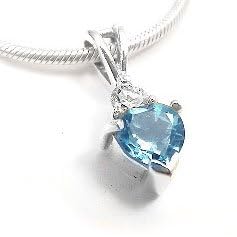 A Faceted Heart-Shaped Genuine Blue Topaz is set in Sterling Silver with an accenting White Cubic Zirconia Crowning the Topaz. Pendant has a 2x4mm bail, is 3/4" tall x 1/4" wide, weighs 2 grams, and is stamped .925. A 16" Box Chain is Included.