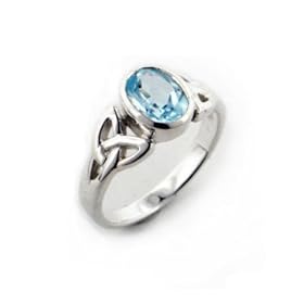 Classic Celtic Knots Surround a 5x7mm Genuine Blue Topaz Oval Stone. Crafted with a Genuine Stone and .925 Sterling Silver.