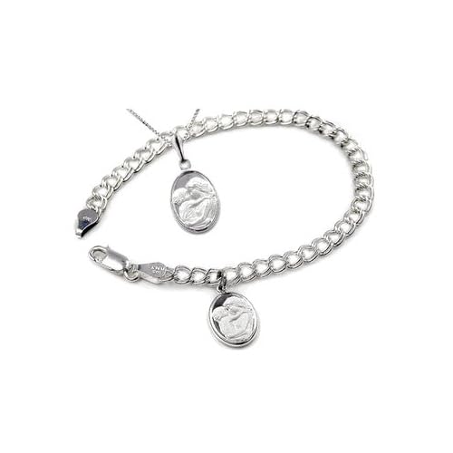 Sterling Silver Mother Holding Child Bracelet & Necklace Set