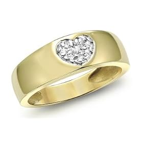 A romantic look for anytime. Dazzling pave set diamonds sparkle from a dainty heart-shaped cut-out in this fun, feminine ring. This sleek, polished modern band is beautifully crafted from warm 14K yellow gold. A lovely look for anytime. ICE Style: RDF207343.