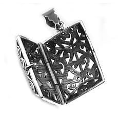 This is a Beautiful Sterling Silver Filigree Scrolled Rectangular Victorian Book / Box Poison Locket Pendant with tiny Repousse Hearts and Scrolls. Locket is 1" tall x 5/8" wide (not including bail) and is 3/8" thick. Pendant has a 4x6mm bail opening and is crafted of genuine .925 sterling silver.